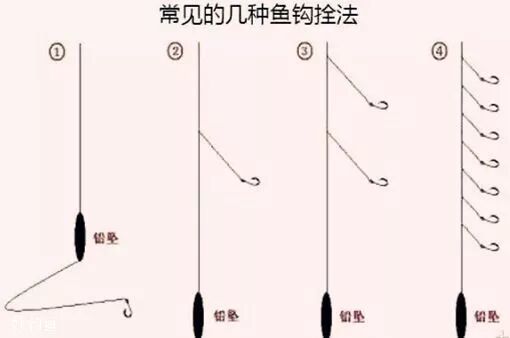 拴鱼钩是一门技术活,不同的垂钓环境和目标鱼类应该选择不同的鱼钩布局,下面小编来介绍几种常见的鱼钩拴法: